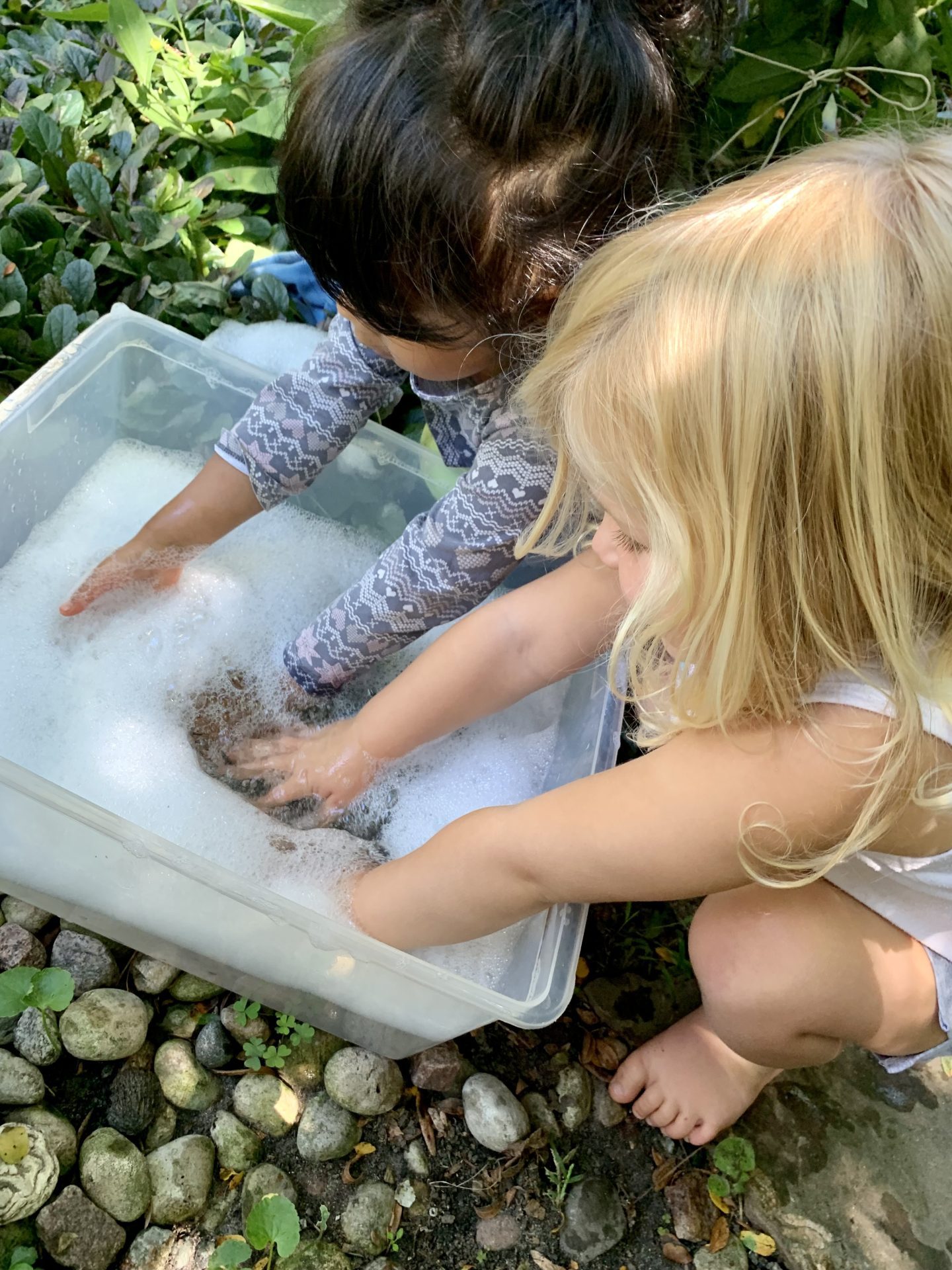 When children play with bubbles, they’re doing much more than having fun. They’re learning to think like little scientists—asking questions, making guesses, and watching what happens next. As they play, they hear and use new words like float, sink, and pour, which helps build their language and confidence. All that scooping, squeezing, and stirring also helps make their hands and fingers stronger for drawing and writing later on. Most of all, bubble play gives families a calm, happy way to connect at the end of a busy day while children learn through joyful play.  You can read more about our bubble adventures over on our Early Science Matters site.